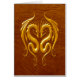 Two golden yellow tribal dragons face each other in this aggressive symmetrical design. The winged serpents have the appearance of being cast out of solid iron which creates a stunning 3D look. A shadow falls onto the rich brown background making the dragons appear to float just above the surface of this card.
