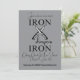 Iron sharpens Iron with crossing knives Christian Men's Retreat Invitations. Simple modern typography. Proverbs 27:17 in the King James Version of the Bible says, "Iron sharpeneth iron; so a man sharpeneth the countenance of his friend". KJV scripture verse. Design also available on a t-shirt and accessories. Add your Church Name/Venue or City/Date of Event/Website or RSVP info.