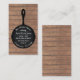 A business card for the food industry featuring an illustration of an iron skillet over a wood background. Personalize the text on front.