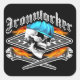 A cool (and rather fierce) iron worker skull wearing his blue hard hat, over flaming crossed spud wrenches, in front of a flaming diamond background. Designed by sdesiata, for the apprentice, journeyman, skilled ironworker, and those with a fierce passion for the trade.