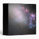 The irregular galaxy NGC 4485, located 25 million light-years away in the northern constellation Canes Venatici. The right side of the galaxy is ablaze with star formation, shown in the plethora of young blue stars and star-incubating pinkish nebulas. The left side contains hints of the galaxy's previous spiral structure, which, at one time, was undergoing normal galactic evolution. The larger culprit galaxy, NGC 4490, is off the bottom of the frame. The two galaxies sideswiped each other millions of years ago and are now 24,000 light-years apart. The gravitational tug-of-war between them created rippling patches of higher-density gas and dust within both galaxies. This activity triggered a flurry of star formation.