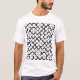An abstract geometric design made up of high contrast black and white spots aligned in random ways.