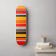A skateboard with an attractive irregular striped design in harmonious colours.