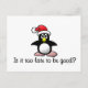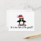 Is It Too Late To Be Good? Christmas Penguin Holiday Postcard