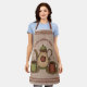Rustic, country apron has cute coffee pot with apple on it and two coffee mugs with steaming coffee in them. Above it says "Is there life before coffee?" Background is a faux vintage woven fabric. Such a cute apron for Mom or Grandma!