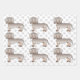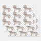 Destei's original cartoon illustration of an adorable smooth hair Isabella and tan coat colour Dachshund breed dog. The dog design is placed nine times on each sheet. The background has a pattern of grey dog paw prints.