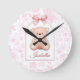 Isabella | Custom Pink Teddy Bear Nursery Design Round Clock