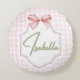 Isabella Personalized Pink Bow & Gingham Print Round Pillow