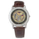The watch looks really great! Very sharp and well done. The leather band is really nice, though for a man's watch I think it should be longer. Unfortunately, it isn't big enough for my husband's wrist but I will get a replacement because he is very excited to wear it!
