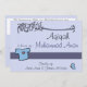 Celebrate a beautiful Aqiqa for your little son - and start to invite all friends and family with this beautiful Islamic invitation card. On the front side, the name of your baby is written under 'Bismillah' - In the name of Allah - and the father and mother are added. On the back you will find a beautiful print of a hadith about the Islamic celebration of Aqiqa. All fields are customizable to your needs.