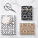 Beautiful Islamic arabesque geometric pattern design with white, black, and gold backgrounds. Perfect for Ramadan, Eid, and any Islamic Event gift-wrapping and crafting. Makes a greeting gift even more eye-catching!