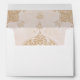 This exquisite envelope set is the perfect outer garment for your wedding invitations, featuring a lace-effect interior that embodies the essence of Islamic art. The delicate pattern, printed in subtle shades of cream and ivory, casts a vision of elegance as soon as your guests unveil the envelope. The exterior, equally elegant, carries the names and address in a classic typeface, bordered by a strip of matching lace-effect design. This set is a prelude to the splendour of your wedding day, promising an event wrapped in beauty and grace.