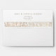This exquisite envelope set is the perfect outer garment for your wedding invitations, featuring a lace-effect interior that embodies the essence of Islamic art. The delicate pattern, printed in subtle shades of cream and ivory, casts a vision of elegance as soon as your guests unveil the envelope. The exterior, equally elegant, carries the names and address in a classic typeface, bordered by a strip of matching lace-effect design. This set is a prelude to the splendour of your wedding day, promising an event wrapped in beauty and grace.