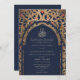 Islamic Navy Blue Traditional Mihrab Arabesque Wedding Invitation