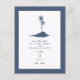 A modern beach wedding save the date postcard featuring a dark blue illustration of two palm trees on an island. Personalize the text with details of your occasion.