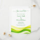The clean, modern layout keeps your details crisp and easy to read, while layered green waves create graceful movement and depth. The result is bright, joyful, and effortlessly sophisticated — perfect for destination weddings, summer celebrations, or couples who love fresh, vibrant color.