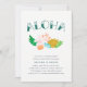 Aloha! Throwing a Hawaiian or luau themed wedding welcome dinner before the big day? Invite friends and family with our island chic wedding welcome reception invitations, featuring a bouquet of tropical flowers in elegant beachy hues, with "aloha" in curved dark teal lettering. Cards reverse to solid aqua.