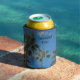 Relax in paradise with a can of your favourite drink. This can cooler features tall palm trees reaching up into the bright blue sky. This photo captures the long thin trunks and the bright green palm branches of these tropical trees. "On Island Time" can easily be customized if you desire. The same design appears on both sides of the cooler.