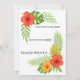 Vibrant hibiscus, monstera, and palm leaves in a bold tropical palette—great for destination weddings or luau-themed birthdays.