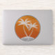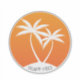 Two swaying palm trees over a bright orange sun promote an "island vibes" state of mind. The whimsical text "island vibes" can be personalized with your desired text, name or monogram.