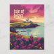 A charming and nostalgic depiction of the Isle of Man, situated in the Irish Sea between Great Britain and Ireland. The design highlights the island's rugged coastline, rolling green hills, and historic landmarks such as Peel Castle and the Laxey Wheel. Rendered in a vintage style, the artwork captures the timeless allure and natural beauty of the Isle of Man, inviting viewers to explore its rich heritage and scenic landscapes.