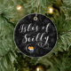 Christmas decoration with stylish scripted design features the flag of the Isles of Scilly in a heart.