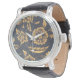 Exquisite gold and slate colored wristwatch decorated with intricate floral designs. Patterns are based upon traditional floral motifs from Islamic art. Makes a great gift for someone special, or just as a treat for yourself! Feel free to customize your design by choosing your strap and bezel.