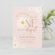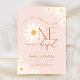 Isn't She Lovely Isn't She ONEderful daisy 1st birthday party invitation. Cute design in blush pink. Features daisy flowers and trendy modern typography script font. Perfect for a stylish boho first girls bday celebration. Personalize with your own details. Printed Zazzle invitations or instant download digital printable template.