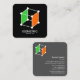 Isometric Cube - White, Green and Orange on Black Square Business Card