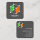 Isometric Cube - White, Green and Orange on Grey Square Business Card
