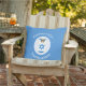 Outdoor pillow for holiday and Hanukkah decor featuring an angel dressed in the blue and white flag of Israel. Designed for families of multiple religions. The Hanukkah Israeli flag angel flies inside a white circle of squiggly squares, surrounded by a background of blue squiggly squares. Add a name to personalize. Customize with the year. Or, add your own text.