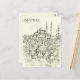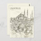 This travel postcard, in hand drawn sketch-style, showcases a view of Istanbul's Sultanahmet neighbourhood.