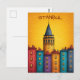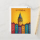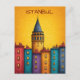 A vibrant city skyline featuring colorful buildings and a historic tower against a warm sunset background inspired by the city of Istanbul, Turkiye. This illustration is great for travelers of Istanbul, Turkiye.