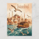 Immerse yourself in the enchanting beauty of Istanbul with this vintage-style postcard featuring a traditional boat sailing along the Bosporus. The postcard highlights the city's iconic skyline, including historic landmarks and the connection between Europe and Asia, making it a timeless keepsake for travelers and collectors.