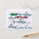iSurf with Sharks Cape Cod, MA Surfing Shark Postcard ^