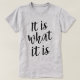 It Is What It Is T-shirt. This shirt is for the cool girl that lives a zen life. She's accepted what she can't change and is working towards living with her best foot forward.