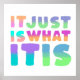 Sarcastic quote, "It just is, what it is." Vintage retro bubble text.