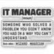 Funny It Manager Sayings "It Manager Someone Who Solves A Problem You Didn't Know You Had In A Way You Can't Understand". Grab this Funny It Manager design as a funny gifts for an awesome mom, dad or friend.