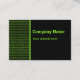 A professional black and lime green design that has a cyber theme with its machine code detail. The front has your business info in a high-contrast green/black combination that resembles computer text on a console or terminal. The reverse is a classic black-and-white with a square of binary language to add interest, and has space for your all-important contact information.