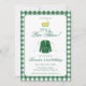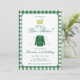 It’s a Par-Three! This classic green golf birthday invitation features a watercolor green jacket, golf clubs, and a bold green gingham border. Perfect for a 3rd birthday golf party, preppy country club theme, or a Masters-inspired celebration with timeless green party style.