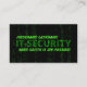 The favourite IT-Security business card for professional cybercrime and cyber security experts with elegant green and black matrix background showing text "IT-Security" and the secure message "Your safety is my passion!" for real information technology specialists.