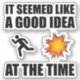It Seemed Like A Good Idea At The Time. This sarcastic funny quote accessory makes a great gag gift for men, women, teens & kids who have a reputation for making bad decisions or being a troublemaker, and love sarcasm. If you love sarcasm and funny sayings, have a sense of humour and have a habit of getting into trouble, this design is for you. Make your friends laugh with this humourous design! Includes a graphic of a person running from an explosion.