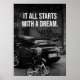 It Starts With A Dream, Supercar Hustle Motivation Poster