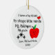 Recognize your child's teacher this holiday season by giving him/her this charming and delightful keepsake. This ornament features black lettering on a white background with black stars, and a red apple with smiley face. It states, "It takes a Big HEART to shape little minds" and can be personalized to add your teacher's name, grade teaching, your students name and year. Your child will be proud to give this to his teacher this holiday season.