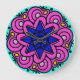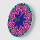 Psychedelic mandala pattern, pink, teal, blue, yellow.
