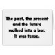 The past, the present and the future walked into a bar. It was tense.