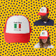 Le drapeau de l'Italie, ou en italien, Bandiera Italiana. Ci-dessous, le mot ITALIA, dans les rayures rouges, blanches et vertes de l'ol Tricolore. Ci-dessus, un endroit pour votre nom. Créez une touche personnalisée pour vous-même ou ajoutez le nom de quelqu'un d'autre pour un cadeau customisé de ce chapeau de camionneur.