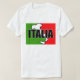 ITALIA in bold black text over a green, white and red map of Italy where the white section is the map of Italy.