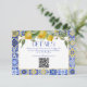 Italian Blue Tile Lemons Wedding Website QR Code Enclosure Card