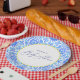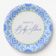 Italian Blue Tile Yellow Line Baby Shower Script Paper Plate